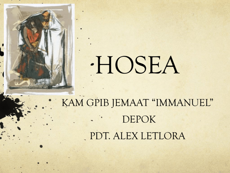 HOSEA KAM GPIB JEMAAT “IMMANUEL” DEPOK PDT. ALEX LETLORA Pendahuluan Bagian terakhir dari kitab kenabian ialah 12 kitab kecil. Jika dikumpulkan bersama ke-12 kitab itu belum setebal kitab Yesaya. Oleh karena ‘kecilnya’ kitab-kitab tersebut maka ke12 kitab nabi tersebut disebut sebagai kitab ‘nabi-nabi kecil’. Sebutan nabi kecil bukan karena bermakna yang kecil tetapi sebaliknya juga memiliki pesan yang besar seperti yang disampaikan nabi Hosea dan Amos. Keduabelas kitab yang tergolong dalam "Nabi-nabi Kecil" dalam Kitab Suci Ibrani dan Kristen Barat adalah sbb.: o Hosea Nahum o Yoël Habakuk o Amos Zefanya o Obaja Hagai o Yunus Zakharia o Mikha Maleakhi Dalam kitab ke-12 nabi, para nabi ditempatkan pada urutan tertentu. Maksunya agar pengurutan nabi disesuaikan dengan waktu kegiatan setiap nabi. Misalnya kitab Hosea dan Amos yang terpisah oleh Yoel dapat dibahas bersama sebab keduanya melayani di waktu, tempat dan pemerintahan yang sama. Kitab Hosea Kitab Hosea kemungkinan besar bukanlah kitab favorit mayoritas orang-orang Kristen. Tidak banyak yang diketahui dari kitab ini. Hanya ada tiga bagian yang mungkin cukup dikenal dari kitab ini. Yang paling menonjol tentu saja adalah kontroversi seputar perkawinan Hosea dengan seorang pelacur (1:2). Bagian lain adalah 6:7 (“Tetapi mereka itu telah melangkahi perjanjian di Adam, di sana mereka telah berkhianat terhadap Aku”), yang di dalam tradisi Reformed biasanya diyakini sebagai salah satu petunjuk untuk keberdosaan semua manusia di dalam Adam sebagai kepala perjanjian. Bagian terakhir yang cukup akrab bagi orang- orang Kristen adalah 6:6 (“Sebab Aku menyukai kasih setia, dan bukan korban sembelihan, dan menyukai pengenalan akan Allah, lebih dari pada korban-korban bakaran”), karena bagian ini pernah dikutip oleh Yesus sebanyak dua kali (Mat 9:13; 12:7) dan mirip dengan ucapan TUHAN dalam kisah Samuel menegur Saul (1 Sam 15:22). Apakah keunikan Kitab Hosea dibandingkan kitab-kitab yang lain? Yang pertama, kitab ini merupakan tulisan dari seorang nabi yang melayani di daerah utara (negara Israel). Ini merupakan fenomena yang cukup menarik karena Hosea kemungkinan besar adalah satu- satunya nabi Allah yang diutus untuk melayani bangsa Israel. Keunikan ini bahkan dijadikan dasar oleh sebagian teolog untuk menduga bahwa Kitab Hosea dipenuhi oleh modifikasi dari pihak bangsa Yehuda untuk menunjukkan superioritas bangsa Yehuda atas bangsa Israel. Yang kedua, Kitab Hosea memuat pesan simbolis yang sangat kontroversial melalui perkawinannya dengan seorang pelacur (1:2; 3:1). Pesan simbolis sendiri sebenarnya bukan sesuatu yang baru dalam pelayanan para nabi. Yesaya pernah diperintahkan TUHAN untuk telanjang dan berjalan tanpa kasut selama 3 tahun (20:1-6), begitu pula Yeremia yang menyembunyikan ikat pinggang di Sungai Efrat sehingga lapuk (13:1-11) atau dilarang untuk menikah (16:2). Tindakan simbolis yang dilakukan Hosea menjadi terlihat begitu menyolok dan menjadi pusat perdebatan karena kontroversi yang ditimbulkan. Nama “Hosea” (atau “Hoshea”) merupakan nama yang cukup umum. Paling sedikit ada 4 orang berbeda yang bernama “Hosea”: Yosua (Bil 13:8, 16), Raja Hosea (2Raj 17:1, 3, 4, 6), Hosea ayah Azarya (1Taw 27:20), dan Nabi Hosea (Hos 1:1). Nama ini mengandung akar kata Ibrani yāsha’ yang berarti “menyelamatkan”. Walaupun kata “Yahweh” tidak terlihat secara eksplisit dalam nama ini (bdk. nama “Yosua” yang terdiri dari kata “Yah” = “Yahweh” dan yasha’ = “menyelamatkan”), namun nama ini secara tersirat mengarah ke sana. Hosea melayani pada saat kerajaan utara akan dihukum oleh Tuhan (1:4). Dari sisi waktu ia sangat dekat dengan Amos (1:1; bdk. Am 1:1). Lebih tepatnya, Hosea melayani pada zaman Raja Yerobeam II (793-753 SM, bdk. 2Raj 14:23-29). Pada masa itu Kerajaan Israel berada pada puncak kekuasaan. Keadaan ini sangat berbeda dengan dua periode sebelumnya. Pada zaman Yoahas keadaan Israel sangat mengenaskan (2Raj 13:7). Keadaan baru berubah ketika Yoas berhasil merebut kembali beberapa daerah yang dulu dikuasai oeh Asyur (2Raj 13:25). Yerobeam II tinggal mewarisi situasi yang sangat kondusif ini. Keadaan ekonomi tampaknya juga sedang berada di masa keemasan, seperti terlihat dari jumlah rumah mewah yang didirikan (Hos 8:14a). Durasi pemerintahan Yerobeam pun tergolong sangat lama (41 tahun, 2Raj 14:23), sehingga semakin meneguhkan kesan bahwa keadaan bangsa Israel waktu itu benar-benar mapan. Keadaan yang mapan ini tidak disertai dengan kemapanan d bidang spiritual. Ketika rasa aman begitu kuat maka yang terjadi adalah rapuhnya ketergantungan kepada Allah. Situasi politik-militer di atas berbanding terbalik dengan keadaan rohani mereka. Yerobeam II bukan hanya berbuat dosa, namun ia bahkan membuat orang Israel berdosa pula (2Raj 14:24). Kekayaan rakyat sebagian diraih melalui ketidakjujuran (12:8). Kehancuran moral dan sosial terjadi di mana-mana (4:2, 18; 6:8-9; 7:1). Penyembahan berhala berlangsung di mana-mana (2:8; 11:2; 13:1), bahkan praktek ini kemungkinan diwarnai dengan pelacuran bakti (4:1019). Mereka menolak para nabi Allah (9:7). Kemerosotan dalam ibadah nampak dari pemahaman bahwa semakin meriah sebuah ibadah semakin Allah berkenan maka umat Israel menyamakan ibadah kepada Allah seperti ibadah kepada dewa/i. Maka yang terjadi sebenarnya adalah ibadah dan tata susila sangat berbeda. Apa yang dinubuatkan Hosea (1:4; 13:9; 14:1) digenapi beberapa dekade sesudahnya. Pasca kepemimpinan Yerobeam II Kerajaan Israel terus mengalami krisis kepemimpinan akibat berbagai kudeta. Dinasti Yehu benar-benar berakhir dengan kematian Zakaria (2Raj 15:10- 12). Beberapa raja hanya sempat memerintah selama beberapa bulan sebelum akhirnya dibunuh oleh penerusnya (2Raj 15:8-12, 13-15, 17-22; 25-26, 27-29). Keruntuhan total benar-benar terjadi ketika Raja Asyur menyerang Samaria dan menawan semua penduduknya (2Raj 17:1-6). Suara nabi Hosea bertolak dari pengalaman pribadinya yakni mencintai dan 