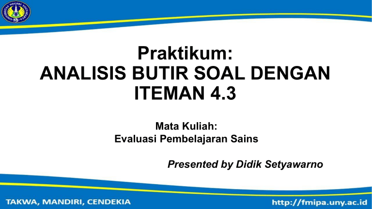 Hasil analisis Iteman 4,3 menyajikan ringkasan analisis