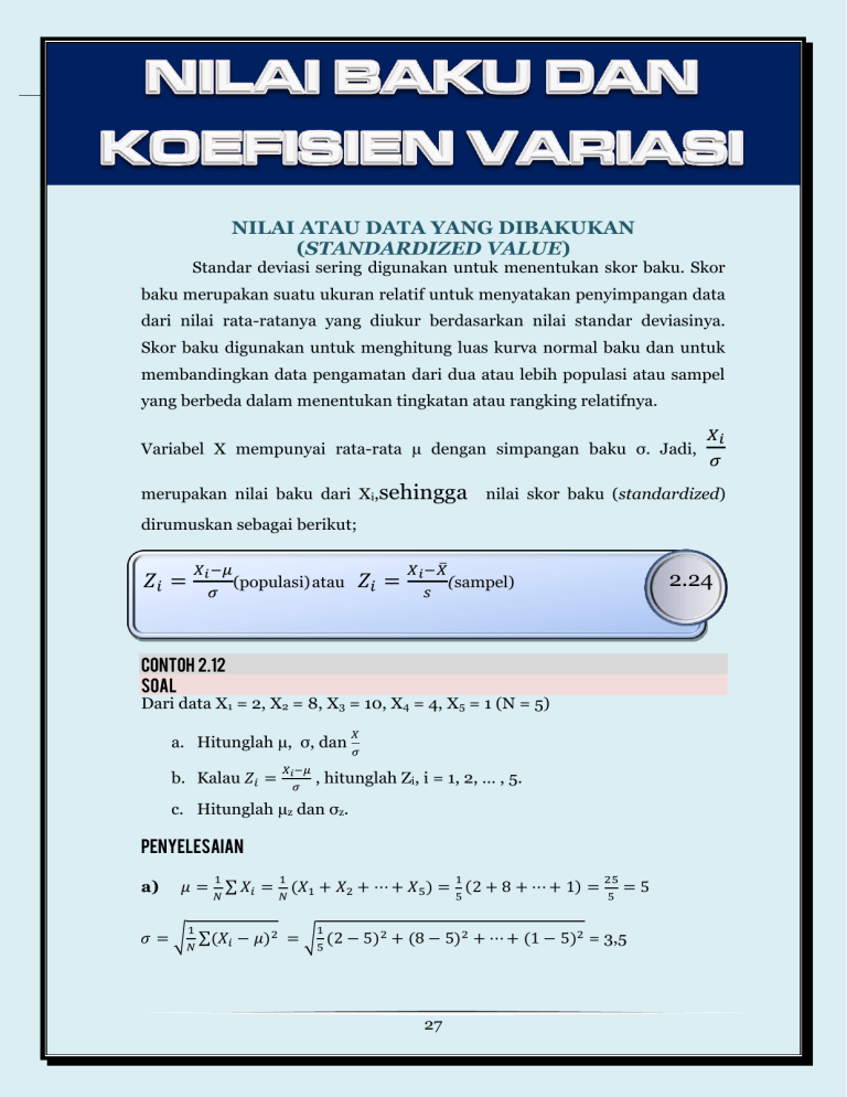 merupakan nilai baku dari Xi,sehingga