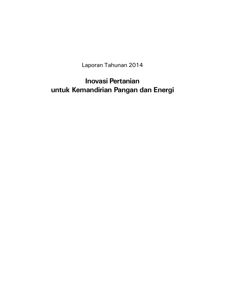 Laporan Tahunan 2014 Inovasi Pertanian untuk Kemandirian Pangan dan Energi i ii Laporan Tahunan 2014 Inovasi Pertanian untuk Kemandirian Pangan dan Energi Badan Penelitian dan Pengembangan Pertanian Kementerian Pertanian Republik Indonesia 2015 iii Laporan Tahunan 2014 Inovasi Pertanian untuk Kemandirian Pangan dan Energi Cetakan 2015 Hak cipta dilindungi undang-undang ď›™Badan Penelitian dan Pengembangan Pertanian, 2015 Katalog dalam terbitan BADAN PENELITIAN DAN PENGEMBANGAN PERTANIAN Laporan tahunan 2014: Inovasi pertanian untuk kemandirian pangan dan energi/Badan Penelitian dan Pengembangan Pertanian. - Jakarta: IAARD Press, 2015 ix, 171 hlm.: ill.; 28 cm 631.152 1. Inovasi 2. Pertanian I. Judul ISBN 978-602-344-031-3 IAARD Press Badan Penelitian dan Pengembangan Pertanian Jalan Ragunan No. 29, Pasarminggu, Jakarta 12540 Telp: (021) 7806202, Faks.: (021) 7800644 Alamat Redaksi: Pusat Perpustakaan dan Penyebaran Teknologi Pertanian Jalan Ir. H. Juanda No. 20, Bogor 16122 Telp.: (0251) 8321746, Faks.: (0251) 8326561 e-mail: iaardpress@litbang.pertanian.go.id Anggota IKAPI No. 445/DKI/2012 iv Pengantar T untutan untuk berswasembada pangan semakin menguat, sehingga Kementerian Pertanian memberikan prioritas yang tinggi bagi terwujudnya swasembada pangan dalam tempo tiga tahun ke depan. Pemerintah juga berupaya mengembangkan bioenergi untuk menekan penggunaan bahan bakar minyak asal fosil yang harganya semakin mahal dan ketersediaannya semakin terbatas. Memperhatikan keinginan pemerintah untuk mewujudkan kembali swasembada pangan dan meningkatkan peran sektor pertanian dalam pembangunan nasional, Badan Penelitian dan Pengembangan Pertanian terus bekerja keras untuk menghasilkan inovasi yang mampu mengatasi masalah yang dihadapi petani dalam berproduksi. Hal ini semakin penting mengingat beragamnya ancaman terhadap keberlanjutan sistem produksi pertanian. Perubahan iklim misalnya, kini telah melanda sistem produksi pertanian di berbagai negara di dunia. Kekeringan dan banjir yang datang silih berganti dengan intensitas yang makin sering akibat perubahan iklim perlu diantisipasi karena berdampak terhadap penurunan produksi pertanian. Pengalaman empiris membuktikan bahwa ilmu pengetahuan dan teknologi diperlukan untuk mengatasi berbagai masalah yang terjadi. Pengalaman itu menguatkan keyakinan Badan Penelitian dan Pengembangan Pertanian untuk terus meningkatkan kinerjanya dalam menghasilkan teknologi guna meningkatkan produksi dan kesejahteraan petani, yang menjadi tujuan utama pembangunan pertanian. Badan Penelitian dan Pengembangan Pertanian pada tahun 2014 telah menghasilkan berbagai inovasi yang diharapkan segera meluas pengembangannya di tingkat petani dan praktisi pertanian lainnya guna meningkatkan produksi pangan dan bioenergi yang bersentuhan langsung dengan kebutuhan semua lapisan masyarakat di Indonesia. Laporan Tahunan Badan Penelitian dan Pengembangan Pertanian tahun 2014 ini berisi informasi tentang beberapa hasil penelitian yang dilakukan pada tahun 2014 oleh para peneliti/perekayasa yang tersebar di berbagai Puslit dan Balai Besar lingkup Badan Penelitian dan Pengembangan Pertanian. Kepada semua pihak yang telah berkontribusi dalam penyusunan laporan tahunan ini disampaikan terima kasih. Jakarta, April 2015 Kepala Badan, Dr. Ir. Haryono, M.Sc. v vi Daftar Isi Pengantar Daftar Isi ................................................................................. v .................................................................................. vii Inovasi Teknologi 2014 .................................................................. 1 Sumber Daya Lahan . . . . . . . . . . . . . . . . . . . . . . . . . . . . . . . . . . . . . . . . . . . . . . . . . . . . . . . . . . . . . . . . . . . . . Penanganan Kerusakan Lingkungan dan Dampak Perubahan Iklim Global . . . . . . . Pengembangan Teknologi dan Sistem Informasi Sumber Daya Lahan Pertanian . . . . . . . . . . . . . . . . . . . . . . . . . . . . . . . . . . . . . . . . . . . . . . . . . . . . . . . . . . . . . . . . . . . . . . . . . Peta Standing Crops Padi Sawah . . . . . . . . . . . . . . . . . . . . . . . . . . . . . . . . . . . . . . . . . . . . . . . . . . . Perbenihan Padi Mendukung Kemandirian Pangan di Lahan Rawa . . . . . . . . . . . . . . . . Pengembangan Perangkat Uji Efisiensi Pemupukan . . . . . . . . . . . . . . . . . . . . . . . . . . . . . . . . Emisi Gas Rumah Kaca Beberapa Varietas Unggul Padi pada Sawah Tadah Hujan . . . . . . . . . . . . . . . . . . . . . . . . . . . . . . . . . . . . . . . . . . . . . . . . . . . . . . . . . . . . . . . . . . . . . . . . . . . . . Sistem Informasi Kalender Tanam Terpadu . . . . . . . . . . . . . . . . . . . . . . . . . . . . . . . . . . . . . . . . 18 19 Tanaman Pangan . . . . . . . . . . . . . . . . . . . . . . . . . . . . . . . . . . . . . . . . . . . . . . . . . . . . . . . . . . . . . . . . . . . . . . . . . Varietas Unggul . . . . . . . . . . . . . . . . . . . . . . . . . . . . . . . . . . . . . . . . . . . . . . . . . . . . . . . . . . . . . . . . . . . . . . Teknologi Budi Daya . . . . . . . . . . . . . . . . . . . . . . . . . . . . . . . . . . . . . . . . . . . . . . . . . . . . . . . . . . . . . . . . . Produksi dan Distribusi Benih Sumber . .. . . . . . . . . . . . . . . . . . . . . . . . . . . . . . . . . . . . . . . . . . . . . 23 24 28 37 Hortikultura . . . . . . . . . . . . . . . . . . . . . . . . . . . . . . . . . . . . . . . . . . . . . . . . . . . . . . . . . . . . . . . . . . . . . . . . . . . . . . . Varietas Unggul . . . . . . . . . . . . . . . . . . . . . . . . . . . . . . . . . . . . . . . . . . . . . . . .. . . . . . . .. . . . . . . . . . . . . . . Teknologi Budi Daya Ramah Lingkungan . . . . . . .. . . . . . . . . . . . . . . . . . . . . . . . . . . . . . . . . . . . . Produksi dan Distribusi Benih Sumber . . . . . . . . . . . . . . . . . . . .. . . . . . . . . . . . . . . . . . . . . . . . . . . Kerja Sama Bioversity . . . . . . . . . . . . 