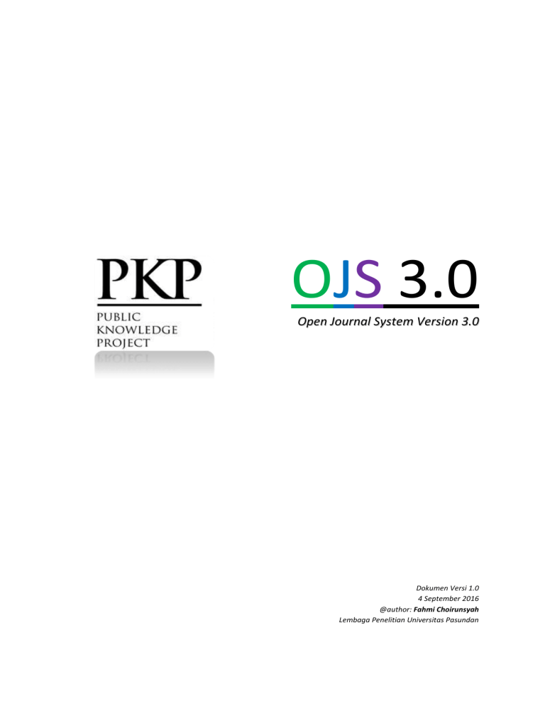 OJS 3.0 Open Journal System Version 3.0 Dokumen Versi 1.0 4 September 2016 @author: Fahmi Choirunsyah Lembaga Penelitian Universitas Pasundan Fahmi Aldi Choirunsyah BAB I OJS 3.0 1.1. Apa yang Baru di OJS 3 Secara garis besar OJS versi sangat berbeda dengan OJS versi sebelumnya, yaitu versi 2. OJS 3 memiliki perangkat tambahan dan fitur baru yang dikembangkan atas masukan dari komunitas dan para pengembang, mulai dari flow yang lebih sederhana. Secara garis besar, fitur baru dari OJS 3.0.0 dapat dijelaskan sebagai berikut: a. Fitur Diskusi editorial Untuk membantu melacak komunikasi yang merupakan bagian penting dari alur kerja pengajuan ini, OJS 3 memiliki fitur diskusi internal setiap tahap editorialnya (Submission, Ulasan, Copyediting, Produksi). Fitur diskusi bekerja seperti sebuah forum komunikasi online, pengguna dapat membuat topik diskusi, mengajak orang lain untuk berpartisipasi, dan mengirimkan pesan (termasuk dengan lampiran): Gambar 1. Layar Diskusi Copyediting Siapapun yang terlibat dengan pengajuan dapat dimasukkan dalam diskusi seperti, editor, bagian editor, penulis, copyeditors, dll. Pengguna menerima pemberitahuan melalui email untuk memberitahu mereka tentang pesan baru. Balasan terjadi mirip seperti di komentar blog atau forum posting: Gambar 2. Permintaan Copyediting Dan seluruh thread diskusi menjadi bagian dari History editorial. 1 Lembaga Penelitian Universitas Pasundan Fahmi Aldi Choirunsyah b. Alur Kerja/Workflow lebih fleksibel OJS 3 terdiri dari 4 tahap editorial: Submission, di mana pengajuan baru ditangani (ditolak, ditugaskan untuk bagian editor, dll); Review, di mana peer review dan penulis revisi berlangsung; Copyediting, dimana ditinjau dan direvisi File dikirim untuk copyediting; dan Produksi, di mana final, versi copyedited diubah menjadi format diterbitkan (PDF, HTML, dll), mengoreksi, dan dijadwalkan untuk publikasi. Workflow dapat dijelaskan sebagai berikut: Submission Review Copyediting Publish Production Gambar 3. Workflow yang fleksibel Untuk meningkatkan fleksibilitas editorial, Anda dapat dengan mudah memindahkan kiriman dari satu tahap ke tahap lain tanpa menyelesaikan salah satu mungkin tugas pada tahap itu. Jika anda tidak melakukan copyediting? Tidak ada masalah, hanya melewatkan dengan klik tombol Kirim ke Produksi. Anda juga dapat melibatkan pengguna Anda inginkan dalam setiap tahap. Jika jurnal Anda tidak melibatkan penulis dalam proofreading, Anda hanya bisa mengecualikan mereka dalam diskusi. c. Peran Lebih Fleksibel Selain membuat alur kerja yang lebih fleksibel, kini Anda dapat dengan mudah mengubah nama-nama peran(Roles) yang ada. Seperti misalnya, anda lebih suka dengan kata Manajer Redaksi dibandingkan dengan Journal Manager, di OJS 3 ini memungkinkan anda untuk menyesuaikannya dengan kebutuhan jurnal anda. Juga, jika Anda ingin membuat peran baru, Anda dapat melakukan itu. OJS 3 memungkinkan anda membuat peran apa pun yang Anda inginkan, dan terhubung dengan setiap (atau semua) tahap alur kerja jurnal. 2 Lembaga Penelitian Universitas Pasundan Fahmi Aldi Choirunsyah Gambar 4. Aturan Pengguna (Roles) Anda juga dapat mengkonfigurasi peran kustom untuk memiliki izin mirip dengan peran yang ada, seperti penulis, pengulas, bagian editor, dll Sebagai contoh, jika Anda membuat Editor-in-Chief peran baru, Anda bisa memberikan bahwa akses peran untuk semua 4 tahap editorial, dan izin sama seperti editor dan manajer jurnal (kemampuan untuk melakukan apa saja dengan pengaturan jurnal dan apa pun dengan pengiriman). Gambar 5. Roles Details d. Akses Tugas lebih Fleksibel Sebuah gangguan umum dengan OJS 2 adalah kebutuhan untuk beralih peran untuk melakukan tugas yang berbeda. Misalnya, jika Anda adalah seorang pengguna terdaftar baik sebagai manajer Journal dan Editor, Anda memiliki akses ke kedua kiriman serta pengaturan jurnal. Namun, jika Anda berada di tengah-tengah mengedit penyerahan, tetapi menyadari bahwa Anda perlu untuk men-tweak pengaturan pada situs web, Anda harus pergi ke halaman rumah pengguna Anda, pilih peran Anda sebagai Journal Manager, masuk ke halaman rumah Manajer Journal, dan kemudian memilih pengaturan yang sesuai. Dalam OJS 3, jika Anda login sebagai pengguna dengan izin untuk mengakses kedua kiriman dan pengaturan jurnal, Anda tidak perlu lagi membuat saklar rumit. Pengaturan ini hanya tersedia di sebelah kiri sidebar. 3 Lembaga Penelitian Universitas Pasundan Fahmi Aldi Choirunsyah Gambar 6. Dashboard *intinya anda dapat memainkan semua peran anda dalam sekali login saja e. File Submission Tidak Terbatas Dalam OJS 2, penulis dapat mengirimkan satu "utama" file (biasanya artikel naskah) dan kemudian lain "tambahan" file yang ditangani secara berbeda. Dalam OJS 3, penulis sekarang dapat meng-upload jumlah file yang tidak terbatas, file utama (pasal naskah, gambar, tabel, data set, dll), menggunakan Add File Pilihan lain. Gambar 7. Dokumen Tambahan Submit Ini semua bisa dibuat tersedia sebagai bagian dari proses peer review, serta di Copyediting dan Produksi tahap. Tujuannya di sini adalah untuk mengurangi perbedaan artifisial yang dikenakan antara artikel naskah dan file lainnya. Untuk Misalnya, gambar tokoh adalah pusat untuk naskah dan harus memiliki pilihan untuk diperlakukan sebagai bagian dari utama pengajuan. f. Antarmuka disesuaikan Selain membuat alur kerja lebih disesuaikan, kami juga telah membuat user interface yang lebih fleksibel. Dalam OJS 2, menciptakan tema baru, style sheet dan template digabungkan. Untuk mengurangi beban ini, kami telah memisahkan style sheet dan template yang mendasari untuk antarmuka administrasi dan antarmuka untuk pembaca. Hal ini membawa dua manfaat: pertama, pengguna yang bekerja dengan beberapa OJS 3 jurnal (misalnya, sebagai editor untuk satu, seorang penulis yang lain, dan resensi untuk ketiga) akan selalu memiliki pengalaman pengguna yang sama di antarmuka administrasi - itu akan selalu terlihat sama di dalam; kedua, memisahkan 4 Lembaga Penelitian Universitas Pasundan Fahm