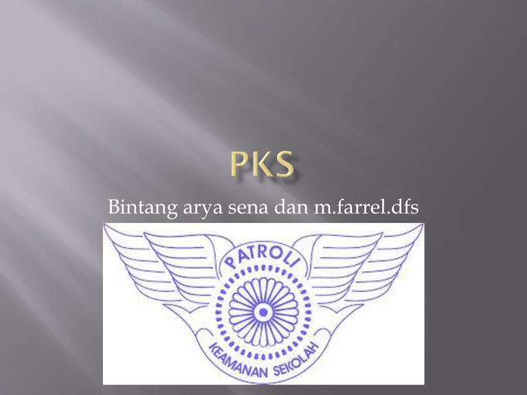 Bintang arya sena dan m.farrel.dfs HASTA PRASETYA PKS Kami anggota PKS : 1. Takwa kepada Tuhan Yang Maha Esa. 2. Mengabdi kepada Negara dan Pancasila. 3. Membela kebenaran dan keadilan. 4. Menjunjung tinggi nama baik sekolah dan PKS. 5. Bergerak, bertindak dengan disiplin, Tegas dan bertanggungjawab. 6. Cepat dan tepat dalam mengambil keputusan. 7. Menjaga moralitas sesama anggota. 8. Siap menempatkan diri dalam masyarakat. Didasarkan oleh rasa memiliki terhadap sekolah didalam menjaga ketertiban dan keamanann nya, maka para pelajar mewujudkan hal tersebut kedalam suatu wadah organisasi guna mempermudah pengkoodinasiannya. Untuk itulah maka pada tanggal 5 mei 1975 dibentuklah suatu wadah yang bernama Polisi Keamanan Sekolah . Pada saat itulah ruang lingkup tugas yang diemban Polisi Keamanan Sekolah masih sempit, yaitu hanya sebatas menjaga keamanan sekolah dari tindakan-tindakan yang dilakukan oleh siswa tersebut. Untuk memperluas ruang lingkup dari tugas Polisi Keamanan Sekolah, maka pada tanggal 5 juni 1975 Polisi Keamanan Sekolah diganti namanya dengan Patroli Keamanan Sekolah dengan persetujuan dari Bapak Letkol. Anton Sudjarwo. Ruang lingkup dari Patroli Keamanan Sekolah mengalami peluasan dan penyempitan. Tugas disempitkan dalam bidang keamanan, Dimana tugas yang diemban Patroli Keamanan Sekolah hanya sebagai pengawas atau pemantau dari tindakan-tindakan negative yang terjadi di sekolah untuk selanjutnya dilaporkan kepada pihak guru. Sedangkan perluasannya yaitu pada bidang kelalulintasan, dimana seluruh anggota Patroli Keamanan Sekolah wajib mengetahui peraturanperaturan kelalulintasan. Nama Batalyon Patroli Keamanan Sekolah di Tasikmalaya adalah Donny Suryanto. Donnya Suryanto adalah PKS teladan yang meninggal dunia setelah melaksanakan tugas ke-PKSan, dan untuk mengenang namanya pada tanggal 7 Februari 1987 diresmikan dengan nama Donny suryanto. Di Suryalaya PKS di bentuk pada tanggal 7 november 1985. PKS adalah singkatan dari Patroli Keamanan Sekolah jika kita mendengar kata Patroli, tentunya kita teringat tugastugas pengawasan daerah sesuai dengan perincian tugas yang dibebankannya, Misalnya Patroli Jalan Raya (PJR) adalah patroli Polisi Lalu Lintas yang tugasnya mengadakan pengawasan keamanan, ketertiban, kelancaran lalu lintas sepanjang jalan tersebut. Begitu pula PKS tidak jauh beda tugasnya dengan PJR tetapi yang membedakannya adalah ruang lingkup tugasnya, PJR bertugas disepanjang jalan raya sedangkan PKS di lingkungan sekolah serta jalan menuju ke sekolah. PKS adalah suatu organisasi yang merupakan wadah partisipasi para pelajar (SD/SLTP/SLTA) yang berminat di bidang kelalu lintasan di bawah naungan kepolisian Organisasi adalah sekelompok orang terdiri dari dua orang atau lebih yang saling bekerja sama untuk mencapai mufakat Sebagai upaya menanamkan kesadaran hukum dan peraturan-peraturan lalu lintas sedini mungkin kepada para remaja umumnya dan pelajar pada khususnya, sehingga kelak dikemudian hari akan menjadi generasi yang telah memiliki disiplin dan sopan santun lalu lintas, selanjutnya mengamalkan serta melaksanakan sebagai pamakai jalan yang baik. Oleh karena itu masalah lalu lintas merupakan tanggung jawab kita bersama termasuk pelajar, maka sebagai rasa tanggung jawab para pendidik dan petugas dibidang lalu lintas menganggap perlu membentuk suatu wadah untuk menampung kegiatan para pelajar dan pemakai jalan disekitar sekolah masing-masing dan wadah tersebut adalah Patroli Keamanan Sekolah . Anggota PKS angkatan pertama terdiri dari pelajar (SD/SLTP/SLTA) yang terpilih oleh guru atau Pembina, untuk PKS sekarang siapa saja bisa jadi anggota PKS asalkan siap untuk memenuhi persyaratanpersyaratan sebagai berikut : Berbadan sehat dan tidak cacat Berhasrat tebal dan sanggup menjadi anggota PKS yang baik Dipilih oleh guru/Pembina/wali kelas Mendaptkan izin dari orang tua Bersedia mengikuti berbagai jenis pendidikan PKS Dengan sukarela dan tidak mengajukan tuntunan ketentuan yang telah ditetapkan