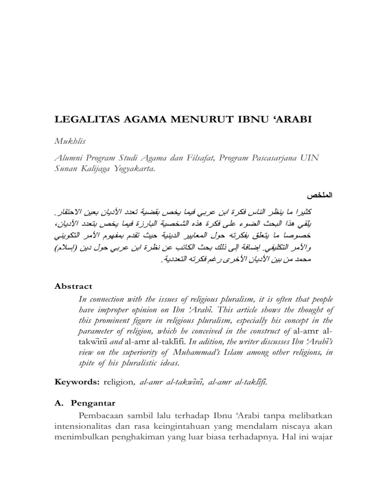 LEGALITAS AGAMA MENURUT IBNU ‘ARABI