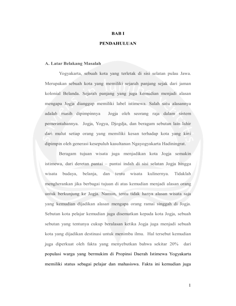 BAB I PENDAHULUAN A. Latar Belakang Masalah Yogyakarta, sebuah kota yang terletak di sisi selatan pulau Jawa. Merupakan sebuah kota yang memiliki sejarah panjang sejak dari jaman kolonial Belanda. Sejarah panjang yang juga kemudian menjadi alasan mengapa Jogja dianggap memiliki label istimewa. Salah satu alasannya adalah masih dipimpinnya Jogja oleh seorang raja dalam sistem pemerintahannya. Jogja, Yogya, Djogdja, dan beragam sebutan lain lahir dari mulut setiap orang yang memiliki kesan terhadap kota yang kini dipimpin oleh generasi kesepuluh kasultanan Ngayogyakarta Hadiningrat. Beragam tujuan wisata juga menjadikan kota Jogja semakin istimewa, dari deretan pantai – pantai indah di sisi selatan Jogja hingga wisata budaya, belanja, dan tentu wisata kulinernya. Tidaklah mengherankan jika berbagai tujuan di atas kemudian menjadi alasan orang untuk berkunjung ke Jogja. Namun, tentu tidak hanya alasan wisata saja yang kemudian dijadikan alasan mengapa orang ramai singgah di Jogja. Sebutan kota pelajar kemudian juga disematkan kepada kota Jogja, sebuah sebutan yang tentunya cukup beralasan ketika Jogja juga menjadi sebuah kota yang dijadikan destinasi untuk menimba ilmu. Hal tersebut kemudian juga diperkuat oleh fakta yang menyebutkan bahwa sekitar 20% dari populasi warga yang bermukim di Propinsi Daerah Istimewa Yogyakarta memiliki status sebagai pelajar dan mahasiswa. Fakta ini kemudian juga 1 diperkuat dengan fakta lain yang menyebutkan bahwa di Jogja terdapat lebih dari 165 buah Sekolah Menengah Atas atau sederajat baik negeri maupun swasta dan juga tercatat bahwa di Jogja berdiri sejumlah perguruan tinggi yang mencapai angka 67 buah yang terdiri dari universitas, sekolah tinggi dan politeknik. (http://jogjakota.bps.go.id/, diakses tanggal 21 Maret 2012, pukul 19:35). Fakta di atas yang kemudian menjadi asumsi kuat untuk menjadikan Jogja berpredikat sebagai kota pelajar. Fakta lain seputar Jogja salah satunya adalah alasan living cost yang relatif cukup rendah jika dibandingkan kota tujuan wisata lainnya seperti Bali, tentu menjadi faktor penarik para wisatawan baik lokal maupun mancanegara untuk menyempatkan diri untuk singgah di Jogja. Namun, di sisi lain, faktor negatif seperti bencana alam seperti pada kejadian gempa bumi 2006 dan erupsi Merapi 2010 justru menjadi alasan yang cukup kuat pada waktu itu untuk mengurungkan niat berkunjung ke Jogja. Dampaknya, para penggiat industri kreatif dan pariwisata di Jogja merasa resah dengan kondisi demikian. Minimnya minat kunjungan ke Jogja memberikan dampak bagi perputaran roda ekonomi kreatif di Jogja. Akhirnya, atas dasar tujuan yang sama yakni demi memajukan pariwisata Jogja, para penggiat industri kreatif dan pariwisata ini kemudian berlomba – lomba untuk merencanakan paket program wisata ke Jogja (http://gudeg.net/id/, diakses tanggal 1 Maret 2012, pukul 21:05). Kampanye yang coba disuarakan sama, yakni Jogja aman dan nyaman, baik sebagai kota destinasi wisata maupun sebagai kota destinasi belajar. 2 Senada dengan yang dilakukan oleh para penggiat industri pariwisata, salah satu penggiat industri kreatif dan pariwisata di Jogja yang cukup terkemuka adalah Dagadu Djokdja. Salah satu dari pemain lokal yang bergerak di sektor retail dengan lini produk andalannya t-shirt sebagai oleh – oleh alternatif khas Jogja. Merk yang sudah eksis sejak 1994 ini dikenal sebagai brand yang konsisten mengusung Everything About Djokdja di setiap karyanya. Karya – karya tersebut selama ini juga dikenal konsisten membawa pesan – pesan moral yang dikemas dalam komunikasi visual yang lucu, bergaya pop, dan tentunya dengan gaya tutur yang nJogjani. Dagadu yang usianya kini yang menginjak 18 tahun berusaha melakukan berbagai inovasi dan strategi komunikasi untuk menjamu setiap tamu yang singgah ke Jogja. Salah satu strategi pemasaran yang menjadi andalan dari PT. Aseli Dagadu Djokdja adalah hajatan “Roemah Moedik” yang konsisten dihelat Dagadu sejak tahun 2005, sebagai sebuah kegiatan aktivasi merk yang rutin digelar oleh Dagadu selama musim libur lebaran. (sumber : arsip perusahaan PT. Aseli Dagadu Djokdja) Selain Roemah Moedik, menurut Junno Mahesa Marketing Communication Officer (MCO) PT. ADD, kegiatan aktivasi yang dilakukan Dagadu antara lain “Jamasan” dan “Kumpul Bocah”. Masing – masing kegiatan aktivasi memiliki target khalayak yang berbeda, sebagai contoh “Jamasan” atau Jagongan Malem Setonan adalah acara yang memiliki konsep talkshow dengan menghadirkan narasumber yang kompeten sesuai dengan tema yang diangkat beberapa tema yang pernah diangkat adalah “Jogja Kota Plesetan” dengan narasumber Kelik Pelipur Lara dan tema 3 video kreatif dengan narasumber Acong yang merupakan director X-Code, rumah produksi yang merilis web series “Tony Blank Show” di situs Youtube. Kegiatan ini sesuai dengan temanya berusaha mengajak kaum muda Jogja untuk bergabung dan berbagi cerita dalam sebuah acara yang dikemas secara santai. Tujuan lain dibalik itu agar Dagadu juga berusaha mendekatkan diri dengan target market Dagadu, untuk menggali apa yang berada dalam benak merka. Demikian juga dengan “Kumpul Bocah” acara yang dikemas untuk anak – anak usia pra sekolah sampai dengan sekolah dasar ini bertujuan untuk membentuk sebuah komunitas kecil yang anggotanya merupakan dagaduers (sebutan untuk konsumen Dagadu) cilik untuk berkumpul dalam sebuah wadah yang di dalamnya mengajak para pesertanya untuk membekali diri dengan berbagai ketrampilan yang bisa diterapkan baik di dalam maupun di luar tempat merka menuntut ilmu. Kegiatan yang biasanya dilakukan pada hari Minggu ini memang juga bertujuan untuk menggandeng dan memahami consumer insight untuk produk Dagadu Bocah dengan menggali dari aspek kegiatan dan hobi yang biasa dilakukan oleh anak – anak. Hal ini, menurut MCO PT. ADD Junno Mahesa, selain bisa mendekatkan diri dengan konsumen Dagadu Bocah, kegiatan ini juga merupakan sumber inspirasi sekaligus bank data bagi tim kreatif Dagadu.
