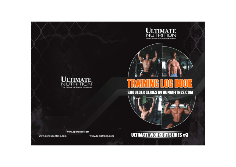 www.sportindo.com www.dennysantoso.com www.duniafitnes.com 1. BENT OVER LATERAL RAISE KATA PENGANTAR P rogram latihan fitnes yang benar dan efektif adalah penting bagi atlit atau setiap orang yang mencari cara untuk membentuk tubuh ideal, baik untuk keperluan perlombaan, photoshoot ataupun menjelang acara penting dalam hidup kita. Namun demikian, masih banyak metode latihan yang kurang benar tapi banyak diikuti oleh para fitnessmania karena metode-metode tersebut dianggap benar, baik berdasarkan atas kebiasaan yang turun temurun dari para senior maupun karena keterbatasan informasi yang bisa diakses. Hal ini membuat banyak pelaku fitnes, terutama para pemula, menerapkan program dan metode latihan yang kurang benar, hingga terkadang tanpa disadari latihan mereka pun menjadi kurang efektif dan bahkan membuat diri mereka beresiko tinggi untuk mengalami cedera ataupun overtraining. Kami, PT Jaya Sportindo, menyadari makin pentingnya panduan program latihan fitness yang benar, efektif, lengkap dan mudah diikuti. Maka dengan bangga kami persembahkan sebuah buku berjudul Training Log Book Ultimate Workout Series yang berisi konsep program latihan yang lengkap dan memungkinkan untuk diterapkan bagi semua kalangan, baik seorang atlit junior, senior, maupun individu yang ingin sehat dan bugar, baik pria ataupun wanita yang ingin membentuk tubuh ideal. Pada edisi ketiga ini, kami menghadirkan Shoulder Series yang akan membantu Anda membentuk otot bahu dengan cepat dan efektif, bagaimana melatih bahu Anda untuk mendapatkan otot bahu yang padat dan berisi. Dalam menjalankan program ini, sebaiknya konsultasikanlah kondisi fisik Anda dan tetap mendapat pengawasan dari Instruktur atau Personal Trainer Anda. Tahap Pelaksanaan Posisi berdiri dengan punggung tegak dan tubuh sedikit condong ke depan Kaki dibuka selebar bahu dengan sudut lutut sedikit ditekuk Posisi lengan memegang dumbbell di bawah dengan siku sedikit ditekuk Telapak tangan menghadap ke dalam Gambar 1 Gerakkan Lengan ke samping membentuk setengah lingkaran dengan siku tetap sedikit ditekuk (sudut tidak berubah) Posisi siku tidak lebih tinggi dari bahu Tarik nafas saat mengangkat beban dan hembuskan nafas saat menurunkan beban Semoga bermanfaat FX Erwin Santoso, SE, MM Fitness Trainer Expert Vice President of PT Jaya Sportindo Gambar 2 Part 3 : Shoulder Series http://www.duniafitnes.com/workout-guide/shoulder/shoulder.html 01 02 Part 3 : Shoulder Series http://www.duniafitnes.com/workout-guide/shoulder/shoulder.html 2. Front BARbell Raise 3. Front Dumbbell Raise Tahap Pelaksanaan Tahap Pelaksanaan Posisi tubuh berdiri, punggung tegak dengan kaki sejajar bahu Posisi tubuh berdiri, punggung tegak dengan kaki sejajar bahu Posisi kaki maju satu Tangan lurus memegang dumbbell di samping badan Tangan lurus memegang stang barbell sejajar bahu di bawah Gerakkan Dumbbell ke atas hingga lengan parallel dengan bahu Gerakkan Stang barbell ke atas hingga lengan parallel dengan bahu Tarik nafas saat mengangkat beban dan hembuskan nafas saat menurunkan beban Tarik nafas saat mengangkat beban dan hembuskan nafas saat menurunkan beban Gambar 1 Gambar 1 Gambar 2 Gambar 2 Part 3 : Shoulder Series http://www.duniafitnes.com/workout-guide/shoulder/shoulder.html 03 04 Part 3 : Shoulder Series http://www.duniafitnes.com/workout-guide/shoulder/shoulder.html 4. Front Cable Raise 5. Overhead Barbell Press Tahap Pelaksanaan Tahap Pelaksanaan Posisi tubuh berdiri, punggung tegak dengan kaki sejajar bahu Posisi punggung tegak Posisi kaki maju satu Tangan memegang stang barbell dengan posisi forearm vertical Tangan lurus memegang stang cable sejajar bahu di bawah Posisi siku bisa sejajar dengan bahu atau lebih depan dari bahu Tariklah Stang cable ke atas hingga lengan parallel dengan bahu Perhatikan agar kaki menyentuh lantai Tarik nafas saat mengangkat beban dan hembuskan nafas saat menurunkan beban Angkat Stang barbell dengan posisi punggung tetap tegak. (tidak bergerak) Tarik nafas saat mengangkat beban dan hembuskan nafas saat menurunkan beban Gambar 1 Gambar 1 Gambar 2 Gambar 2 Part 3 : Shoulder Series http://www.duniafitnes.com/workout-guide/shoulder/shoulder.html 05 06 Part 3 : Shoulder Series http://www.duniafitnes.com/workout-guide/shoulder/shoulder.html 6. Overhead Barbell Press with Smith Machine Tahap Pelaksanaan Posisi punggung tegak Kaki menyentuh lantai Tangan memegang stang barbell dengan posisi forearm vertical Posisi siku bisa sejajar dengan bahu atau lebih depan dari bahu Angkat Stang barbell dengan posisi punggung tetap tegak. (tidak bergerak) Tarik nafas saat mengangkat beban dan hembuskan nafas saat menurunkan beban Gambar 1 Gambar 2 Part 3 : Shoulder Series http://www.duniafitnes.com/workout-guide/shoulder/shoulder.html 07 8. Seated Lateral Raise 7. Overhead Dumbbell Press Tahap Pelaksanaan Tahap Pelaksanaan Posisi duduk dengan punggung tegak dan tubuh sedikit condong ke depan Posisi punggung tegak Tangan memegang dumbbell dengan posisi forearm vertical Kaki rapat sejajar dengan lantai dengan sudut lutut sedikit ditekuk Posisi siku tidak lebih belakang dari bahu (minimal sejajar) Posisi lengan memegang dumbbell di bawah dengan siku sedikit ditekuk Kaki menyentuh lantai Angkat Dumbbell dengan posisi punggung tetap tegak. (tidak bergerak) Telapak tangan menghadap ke dalam Tarik nafas saat mengangkat beban dan hembuskan nafas saat menurunkan beban Beban diangkat hingga batas siku sejajar dengan bahu tanpa merubah sudut siku Gambar 1 Gambar 1 Waktu angkat beban, perhatikan posisi duduk dengan punggung tegak dan tubuh sedikit condong ke depan (dada menempel ke paha) Kaki rapat sejajar dengan lantai dengan sudut lutut sedikit ditekuk Tarik nafas saat mengangkat beban dan hembuskan nafas saat menurunkan beban Gambar 2 Part 3 : Shoulder Series http://www.duniafitnes.com/workout-guide/shoulder/shoulder.html Gambar 2 09 10 Part 3 : Shoulder Series http://www.duniafitnes.com/workout-guide/shoulder/shoulder.html 10. Side Cable Lateral Raise 9. Side Dumbbell La