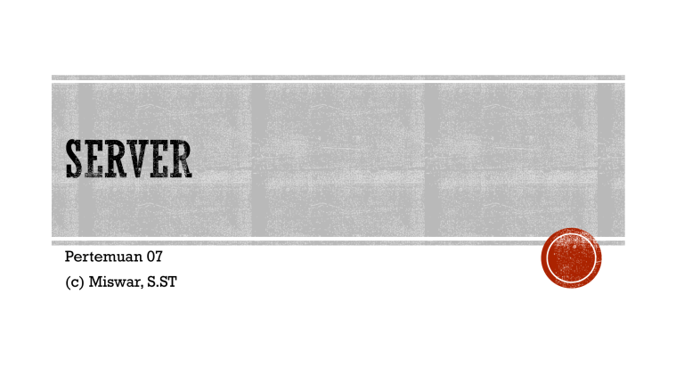 Pertemuan 07 (c) Miswar, S.ST Memahami Server Memahami Cara Instalasi dan Konfigurasi Server Pada dasarnya semua mesin di network dapat dikategorikan dalam : Client dan Server Machine berfungsi sebagai pusat pelayanan (server) dan Machines lain berfungsi meminta pelayanan ( client ) Sebuah sistem komputer yang menyediakan jenis layanan tertentu dalam sebuah jaringan komputer Berfungsi untuk melayani, membatasi, dan mengontrol akses terhadap client-client dan sumber daya pada suatu jaringan komputer Secara hardware, semua PC bisa menjadi Server, tapi PC yg memang diperuntukkan sebagai server memiliki spesifikasi/kemampuan hardware yang lebih tinggi dari PC biasa Sistem operasi khusus, disebut sebagai sistem operasi jaringan Very fault tolerant Higher performance Hardware redundancy Need stable power supply Need good Air Flow Server OS : Linux, Unix, Gentoo, Windows Server, Mac OS Servers, Solaris OS, etc. Server Software: samba, zimbra, filezilla, MySQL, Apache, IIS, etc. GUI not available or optional Ability to reconfigure and update both hardware and software to some extent without restart, Advanced backup facilities to permit regular and frequent online backups of critical data, Transparent data transfer between different volumes or devices, Flexible and advanced networking capabilities, Automation capabilities such as daemons in UNIX and services in Windows, Tight system security, with advanced user, resource, data, and memory Protection. Interact with hardware, sensors to detect conditions such as overheating, processor and disk failure, and consequently alert an operator or take remedial measures itself Berdasarkan fungsinya: Server aplikasi Digunakan untuk menyimpan berbagai macam aplikasi yang dapat diakses oleh client Server data Digunakan untuk menyimpan data baik yang digunakan client secara langsung maupun data yang diproses oleh server aplikasi Server proxy Mengatur lalu lintas di jaringan melalui pengaturan proxy Fax Server: digunakan untuk melayani servis fax bagi client FTP Server: mempunyai layanan protokol FTP Mail Server: melayani client dalam hal mail (surat) Database Server: melayani servis bagi client yang membutuhkan layanan penyimpanan database Proxy Server: memperkuat security pada sebuah jaringan, digunakan untuk memfilter permintaan servis masuk maupun keluar dari sebuah client Web Server: melayani request servis dengan protokol HTTP, dan ada juga IMAP ataupun FTP Telnet Server: melayani servis Telnet, bisa melakukan remote komputer yang kita inginkan File Server: digunakan untuk menampung data – data yang dimiliki oleh sejumlah client Game Server: digunakan untuk pusat untuk menghubungkan antar player (client) dengan player yang lainnya DNS Server: untuk servis DNS, DNS berguna untuk menerjemahkan alamat domain sebuah komputer ke dalam bentuk IP Print Server: digunakan untuk pusat layanan percetakan (print) bagi client Application Server: digunakan untuk menjalankan suatu software aplikasi Streaming Media Server: melayani servis streaming data media seperti musik dan video Home Server: khusus bagi pengguna rumah yang membutuhkan layanan seperti home entertainment, bisa juga ditambah layanan servis lainnya seperti printing servis, web servis, maupun file servis sebagai backup data Dan lain-lain Sebuah perangkat lunak dalam server yang berfungsi menerima permintaan (request) HTTP atau HTTPS dari client (yang dikenal dengan browser web) dan mengirimkan kembali (response) hasilnya dalam bentuk halaman-halaman web yang umumnya berbentuk dokumen HTML 1. 2. Client dapat berupa komputer desktop dengan minimal memiliki browser dan terhubung ke web server melalui jaringan (intranet atau internet) Server yang didalamnya terdapat perangkat lunak web server dan terhubung ke jaringan (intranet atau internet), eg: http://www.bps.go.id/index.html atau IP Address 203.123.60.210 The protocol ("http") The server name ("www.bps.go.id") The file name (“index.html") 3. 4. 5. 6. Browser membuat sebuah koneksi ke IP Address di port 80 Mengikuti HTTP Protocol, browser akan meminta suatu halaman (request) ke server untuk ditampilkan di komputer client (input alamat server di browser) Setelah mendapat permintaan, server mencari informasi (halaman) sesuai permintaan dan memberikan hasilnya (response) berupa HTML text (hasil: ditemukan/tidak ditemukan ‘404 Page not Found’) Browser membaca HTML Tags dan mem-formatnya menjadi sebuah halaman website Name Server/ Domain Name System (DNS): sistem berbentuk database terdistribusi yang akan memetakan/mengkonversikan nama host/mesin/domain ke alamat IP (Internet Protocol) dan sebaliknya Ports: mekanisme dalam protokol jaringan TCP/IP yang mengizinkan sebuah komputer untuk mendukung beberapa sesi koneksi dengan komputer lainnya dan program di dalam jaringan Protocol: sekumpulan prosedur untuk mengatur komunikasi data Beberapa web server yang banyak digunakan: *1 Agustus 2012, http://w3techs.com/technologies/overview/web_server/all Teknologi pemrograman web dimana script (program) diterjemahkan (oleh web browser) di sisi client Menghasilkan web statis Contoh: - HTML (hypertext markup language) - Java script - XML (extensible markup language) - CSS (cascading style sheet) Sebuah teknologi scripting atau pemrograman web dimana script (program) dikompilasi atau diterjemahkan di server (oleh web server) Memungkinkan menghasilkan halaman web yang dinamis Contoh: - PHP (Hypertext Preprocessor) - ASP (Active Server Page) dan ASP .Net - ColdFusion - JSP (Java Server Page) - Perl - Phyton Website Statis - Website yang kontennya tetap dan jarang berubah, ‘sebatas’ menampilkan informasi - Menggunakan bahasa standar seperti HTML (client side), tanpa menggunakan database - Eg: company profile, personal profile, website penawaran produk, dan semua website yang bertujuan melakukan komunikasi satu arah dari pemilik website ke pengunjung tanpa diperlukan interaksi Website Dinamis - Dapat berubah-ubah (sesuai dengan isi database serta konfigurasi yang sud