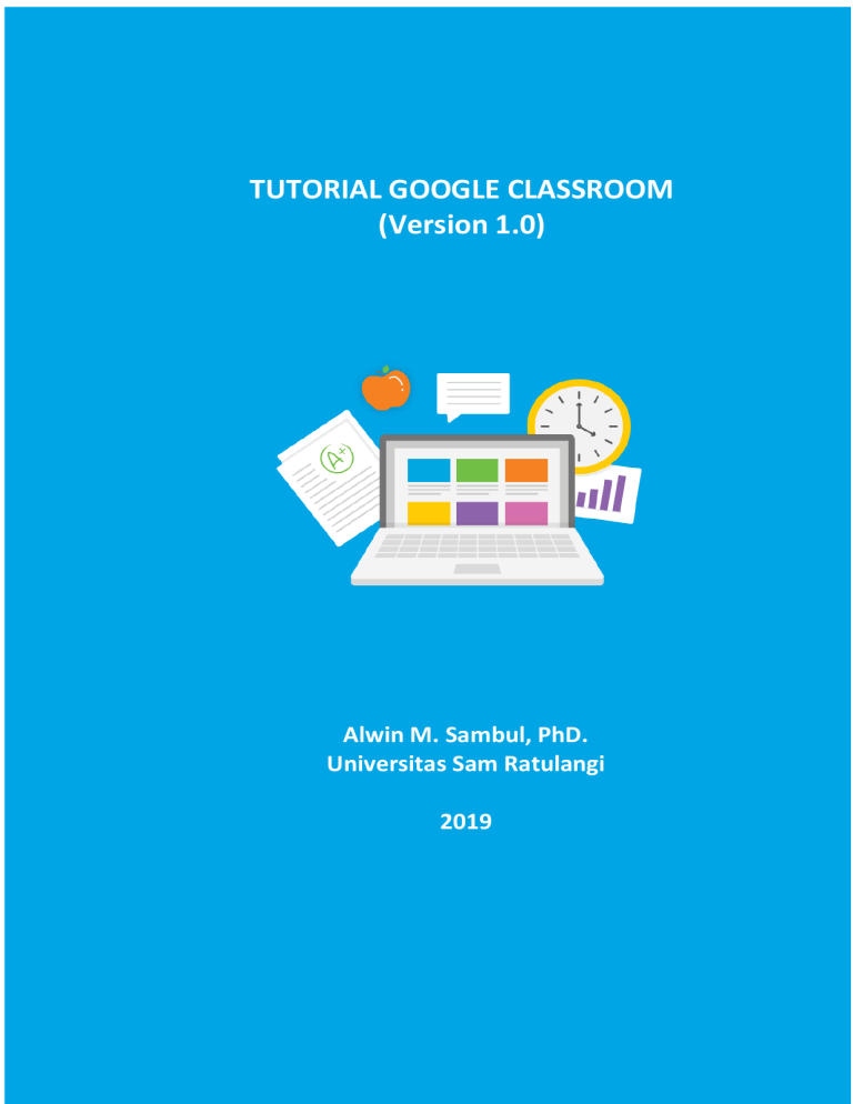 TUTORIAL GOOGLE CLASSROOM (Version 1.0) Alwin M. Sambul, PhD. Universitas Sam Ratulangi 2019 1 DAFTAR ISI Modul 1 1.1 1.2 1.3 Modul 2 2.1 2.2 2.3 2.4 2.5 Modul 3 3.1 3.2 Modul 4 4.1 4.2 4.3 Modul 5 5.1 5.2 5.3 Mempersiapkan Class .....................................................................................3 Membuat Class baru ...........................................................................................3 Merubah theme laman Class...............................................................................4 Membuat informasi umum tentang matakuliah ..................................................4 Membuat Materi Kuliah ..................................................................................6 Menambahkan topik kuliah dan sub CP ..............................................................6 Mengunggah slide kuliah ....................................................................................6 Menambahkan materi video dari Youtube ..........................................................7 Merekam video kuliah dengan Google Classroom app (IOS/Android)..................8 Menambahkan tautan ke materi tambahan ........................................................8 Mengundang Mahasiswa ..............................................................................10 Mengundang mahasiswa menggunakan Class code ..........................................10 Mengundang mahasiswa melalui email.............................................................11 Interaksi Dosen-Mahasiswa...........................................................................13 Mengirimkan email kepada salah satu mahasiswa ............................................13 Mengirimkan email kepada lebih dari satu atau semua mahasiswa ..................13 Interaksi dengan Class comments .....................................................................14 Membuat dan Menilai Assignment ...............................................................16 Membuat Assignment.......................................................................................16 Mahasiswa mengerjakan Assignment ...............................................................16 Dosen mengevaluasi hasil Assignment ..............................................................18 2 Modul 1 Mempersiapkan Class 1.1 Membuat Class baru Berikut langkah-langkah untuk membuat kelas dalam Google Classroom: 1. Masuk ke laman: classroom.google.com. Gunakan akun Google anda untuk login. 2. Pada laman Google Classroom klik icon plus (+) lalu pilih Create class Gambar 1 - Membuat Class 3. Isi Class name sesuai dengan nama matakuliah anda dan klik CREATE Gambar 2 - Dialog Create class 4. Di laman utama Google Classroom, perhatikan letak beberapa fitur penting seperti: a. Header: Identitas Class: Judul MK, Class code b. Stream: Sharing info untuk peserta kuliah. Contoh: Announcement c. Classwork: Aktivitas pembelajaran. Contoh: Assignment, Quiz, Questions, Material. d. People: Laman kelola dosen dan mahasiswa peserta kuliah e. Upcoming: Informasi aktivitas mendatang f. Class setting (gear icon): Pengaturan Class 3 Gambar 3 - Contoh laman utama Google Classroom 1.2 Merubah theme laman Class 5. Klik Select theme 6. Dari jendela Gallery, pilih theme yang anda suka Gambar 4 - Memilih theme laman Google Classroom 1.3 Membuat informasi umum tentang matakuliah 7. Untuk membuat Topic baru, klik Classwork à Create à Topic, lalu ketik “Tentang kuliah ini” 8. Untuk membuat Material baru, klik Classwork à Create àMaterial. Masukkan: a. Title: Contoh: “Deskripsi singkat” b. Description: Masukkan deskripsi singkat matakuliah anda c. Topic: Pilih nama topic “Tentang kuliah ini” 9. Klik Post untuk menyimpan 4 Gambar 5 - Membuat Deskripsi singkat matakuliah 10. Buat lagi Material baru, klik Classwork à Create àMaterial. Masukkan: a. Title: Contoh: “Capaian Pembelajaran” b. Description: Masukkan capaian pembelajaran matakuliah anda c. Topic: Pilih nama topic “Tentang kuliah ini” 11. Klik Post untuk menyimpan Gambar 6 - Membuat Capaian Pembelajaran Matakuliah 5 Modul 2 Membuat Materi Kuliah 2.1 Menambahkan topik kuliah dan sub CP 12. Buat Topic baru, klik Classwork à Create à Topic, lalu ketik judul topik pertama kuliah anda. Contoh: “Kuliah 01 – Pengantar Rekayasa Medika” 13. Buat Material baru dengan cara klik Classwork à Create àMaterial. Masukkan: a. Title: Contoh: “Sub CP Kuliah 01” b. Description: Masukkan sub capaian pembelajaran untuk kuliah ini c. Topic: Pilih nama topic yang sesuai, contoh: “Kuliah 01 – Pengantar Rekayasa Medika” Gambar 7 - Membuat Sub CP kuliah 2.2 Mengunggah slide kuliah 14. Buat Material baru dengan cara klik Classwork à Create àMaterial. Masukkan: a. Title: Contoh: “Slide Kuliah 01” b. Description: Kosongkan c. Topic: Pilih nama topic yang sesuai, contoh: “Kuliah 01 – Pengantar Rekayasa Medika” 15. Klik icon (clip) di kiri bawah, akan tampil dialog “Insert files using Google Drive”. Drag dan drop file slide kuliah ke bagian dengan tulisan “Drag files here” dan klik Upload. Tunggu sampai proses unggah selesai dan klik Post. 6 Gambar 8 - Unggah file slide kuliah 2.3 Menambahkan materi video dari Youtube 16. Buat Material baru dengan cara klik Classwork à Create àMaterial. Masukkan: a. Title: Contoh: “Video: So you want to become a Biomedical Engineer” b. Description: Kosongkan c. Topic: Pilih nama topic yang sesuai, contoh: “Kuliah 01 – Pengantar Rekayasa Medika” 17. Klik icon (logo Youtube) di kiri bawah, akan tampil dialog “Insert video”. 18. Cari video Youtube yang anda inginkan dengan menggunakan isian keyword yang ada. Jika sudah ditemukan, klik pada item video yang diinginkan dan klik Add. 19. Klik Post untuk menyimpan. Gambar 9 - Menggunakan video Youtube 7 20. Cobalah mainkan video anda dengan men-klik item Topic berisi video. Gambar 10 - Memainkan materi kuliah video Youtube 2.4 Merekam video kuliah dengan Google Classroom ap