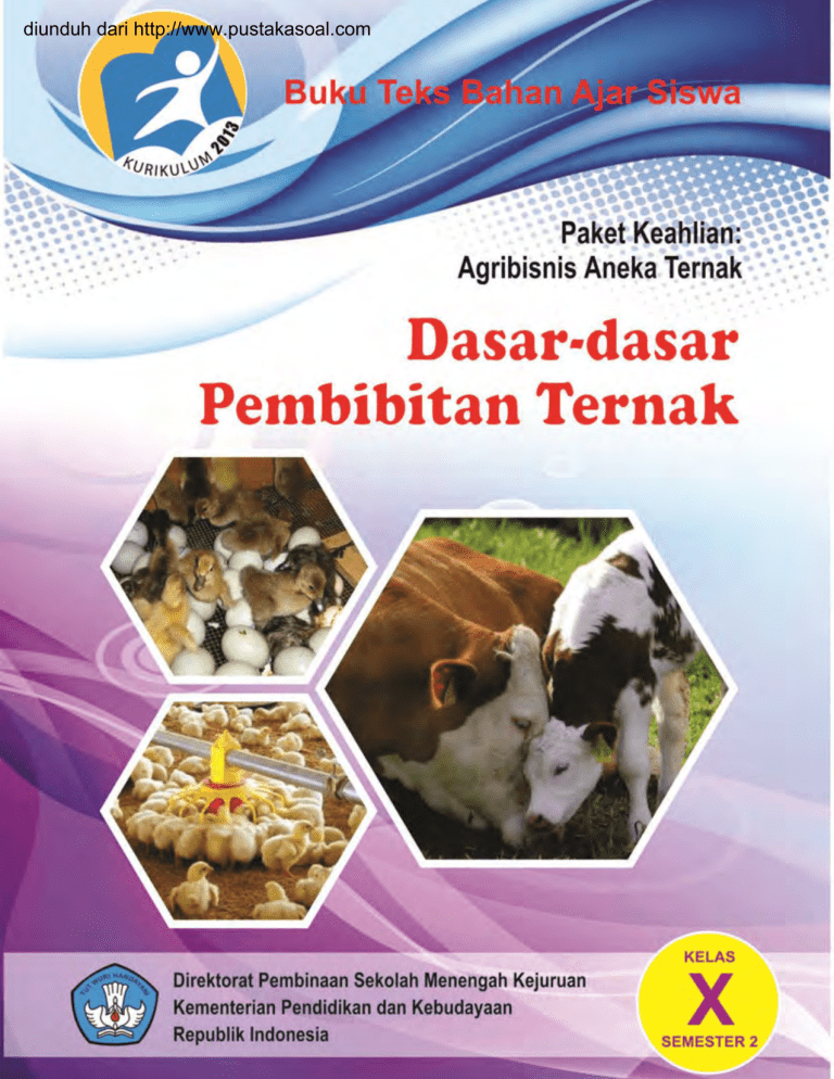 diunduh dari http://www.pustakasoal.com i KATA PENGANTAR Kurikulum 2013 dirancang untuk memperkuat kompetensi siswa dari sisi sikap, pengetahuan dan keterampilan secara utuh. Keutuhan tersebut menjadi dasar dalam perumusan kompetensi dasar tiap mata pelajaran mencakup kompetensi dasar kelompok sikap, kompetensi dasar kelompok pengetahuan, dan kompetensi dasar kelompok keterampilan. Semua mata pelajaran dirancang mengikuti rumusan tersebut. Pembelajaran kelas X dan XI jenjang Pendidikan Menengah Kejuruhan yang disajikan dalam buku ini juga tunduk pada ketentuan tersebut. Buku siswa ini diberisi materi pembelajaran yang membekali peserta didik dengan pengetahuan, keterampilan dalam menyajikan pengetahuan yang dikuasai secara kongkrit dan abstrak, dan sikap sebagai makhluk yang mensyukuri anugerah alam semesta yang dikaruniakan kepadanya melalui pemanfaatan yang bertanggung jawab. Buku ini menjabarkan usaha minimal yang harus dilakukan siswa untuk mencapai kompetensi yang diharuskan. Sesuai dengan pendekatan yang digunakan dalam kurikulum 2013, siswa diberanikan untuk mencari dari sumber belajar lain yang tersedia dan terbentang luas di sekitarnya. Peran guru sangat penting untuk meningkatkan dan menyesuaikan daya serp siswa dengan ketersediaan kegiatan buku ini. Guru dapat memperkayanya dengan kreasi dalam bentuk kegiatan-kegiatan lain yang sesuai dan relevan yang bersumber dari lingkungan sosial dan alam. Buku ini sangat terbuka dan terus dilakukan perbaikan dan penyempurnaan. Untuk itu, kami mengundang para pembaca memberikan kritik, saran, dan masukan untuk perbaikan dan penyempurnaan. Atas kontribusi tersebut, kami ucapkan terima kasih. Mudah-mudahan kita dapat memberikan yang terbaik bagi kemajuan dunia pendidikan dalam rangka mempersiapkan generasi seratus tahun Indonesia Merdeka (2045). i DAFTAR ISI KATA PENGANTAR .............................................................................................................................................i DAFTAR ISI ........................................................................................................................................................... ii DAFTAR GAMBAR ............................................................................................................................................ iv DAFTAR TABEL ................................................................................................................................................. vi PETA KEDUDUKAN BAHAN AJAR ...........................................................................................................vii GLOSARIUM ..................................................................................................................................................... viii I. PENDAHULUAN ....................................................................................................................................... 1 A. Deskripsi ............................................................................................................................................. 2 1. Pengertian................................................................................................................................... 2 2. Rasional........................................................................................................................................ 2 3. Tujuan ........................................................................................................................................... 2 4. Ruang Lingkup Materi .......................................................................................................... 4 5. Prinsip-prinsip Belajar, Pembelajaran, dan Asesmen ........................................... 4 6. Kompetensi ................................................................................................................................ 5 B. Prasyarat ............................................................................................................................................. 5 C. Petunjuk Penggunaan ................................................................................................................... 6 D. Tujuan Akhir ..................................................................................................................................... 6 E. Kompetensi Inti dan Kompetensi Dasar .............................................................................. 7 F. II. Cek Kemampuan Awal ................................................................................................................. 9 PEMBELAJARAN ................................................................................................................................... 12 Kegiatan Pembelajaran 1. Anatomi Reproduksi Ternak (Waktu : 10 x 3 JP) ................... 12 A. Deskripsi .......................................................................................................................................... 12 B. Kegiatan Belajar ........................................................................................................................... 12 ii 1. Tujuan Pembelajaran ......................................................................................................... 12 2. Uraian Materi ......................................................................................................................... 15 3. Refleksi ...................................................................................................................................... 87 4. Tugas .......................................................................................................................................... 87 5. Test Formatif .......................................................................................................................... 88 C. Penilaian ......................................................................................